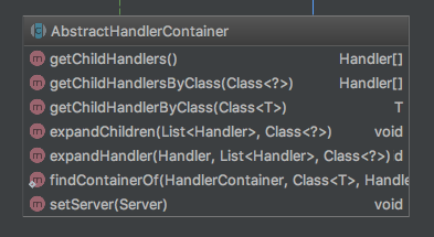 该类完成一些通用的操作,例如getChildHandlers获取孩子处理器,getChildHandlersByClass、getChildHandlerByClass这些操作都实现了一个骨架,但是对于每个容器可能他们对应的孩子寻找方法不一样(比如容器的集合HandlerCollection需要挨个Handler遍历查找孩子,HandlerWrapper仅对被装饰的Handler查找),因此在该类抽象一个expandChildren方法,让子类自行实现。同时提供了一个expandHandler方法,展开单个Handler的孩子,让子类方便调用