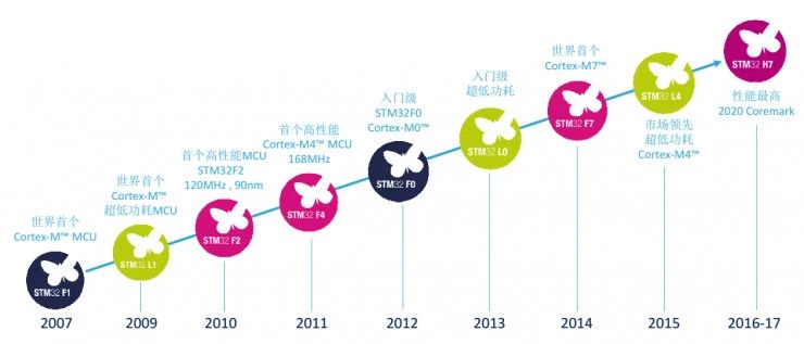 而意法半导体是另一个在中国本土大获成功的MCU厂家,但其在十年前还是个无足轻重的小弟,时间回到2006年,一家名为Luminary流明诺瑞的创业公司大胆地推出基于ARM Cortex-M3核的MCU,对于ARM家的Cortex-M3架构,当时的大牌MCU公司并不太感冒,应者廖廖无几,只有ST在2007年推出了STM32系列。但随后,Cortex-M3产品的发展令人咋舌,ST也因为搭上了这班快车而一鸣惊人。Cortex-M3则成为ARM历史上增长最快的耀眼明星,她的发展令大牌们大跌眼镜而纷纷跟上,虽然脚步迟缓但还是想着能分得一杯羹。