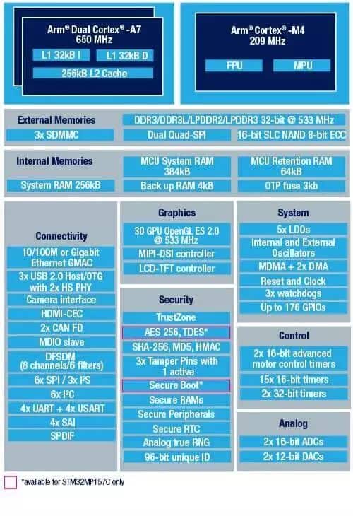 STM32 H7 虽然性能强大,但价格也上去了,但没有Linux的加持显然是没有灵魂的。为了简化工业制造、消费电子、智能家居、医疗应用高性能解决方案的开发,ST利用多年积累的Ar Cortex 研发知识扩大STM32 MCU的功能新推出了STM32MP1多核微处理器系列,其具有计算和图形处理能力,兼备高能效实时控制和高功能集成度。