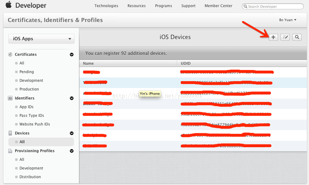 对于没有企业开发者账号(299$)的开发者来说,要想使用蒲公英将自己的应用分发给其他用户的 iOS 设备,只能通过将要安装设备的 UDID 添加到应用的 mobileprovision 文件中来实现。本文说明了如何正确的将 iOS 设备的 UDID 添加到应用的 mobileprovision 文件中。