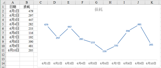 同样的方法,定义名称“损耗”,公式:=OFFSET(Sheet1!$B$2,0,0,COUNTA(Sheet1!$B:$B)-1,1)