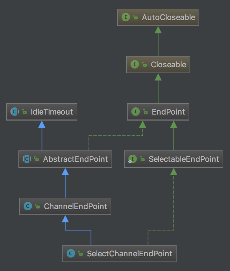 ChannelEndPoint表示一个包装了SocketChannel的EndPoint,主要封装一些对SocketChannel的操作,包括对Channel的数据读写