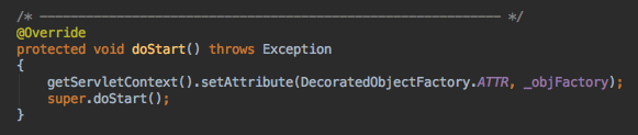 启动比较简单,设置了一个装饰器工厂到ServletContext(这个工厂没看出比较核心的价值),之后调了ContextHandler的启动,这里就不在多讲了