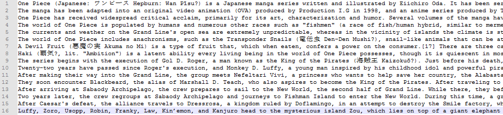 实验部分,使用两个数据集进行测试,第一个数据集是PLSA实验中使用的第二个关于one piece的16个英文文档,来源于维基百科,其中包含日文字符,因此停止词中加入了日语字符,第二个数据集是5000篇新浪社会新闻,是中文文档。