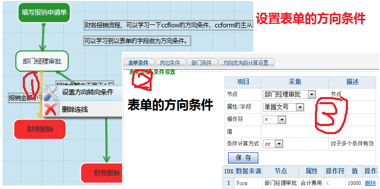 方向条件优先级设置:因为每一个方向都已经设置上了方向条件,ccflow在执行的过程中是按一定的顺序来取这些方向条件。如果判定了这个条件成立,ccflow就会认为这条方向是通过的从而放弃判断其它的条件。