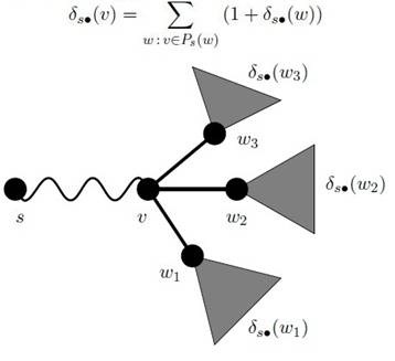 节点s对节点v的依赖度(dependency)表示为δs· (v):