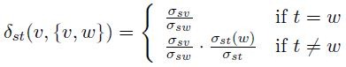即σst(v)/σst,表示点对s、t对节点v的pair-dependency |