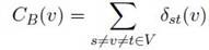 图G中两节点s,t之间的所有最短路径中经过节点v的条数 |