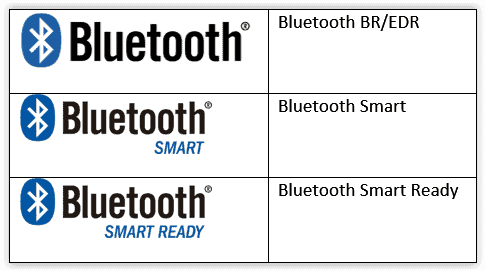 蓝牙商标有三种,可用来区分产品所采用的蓝牙类型。制造商会在产品本身或其包装上使用这些商标。