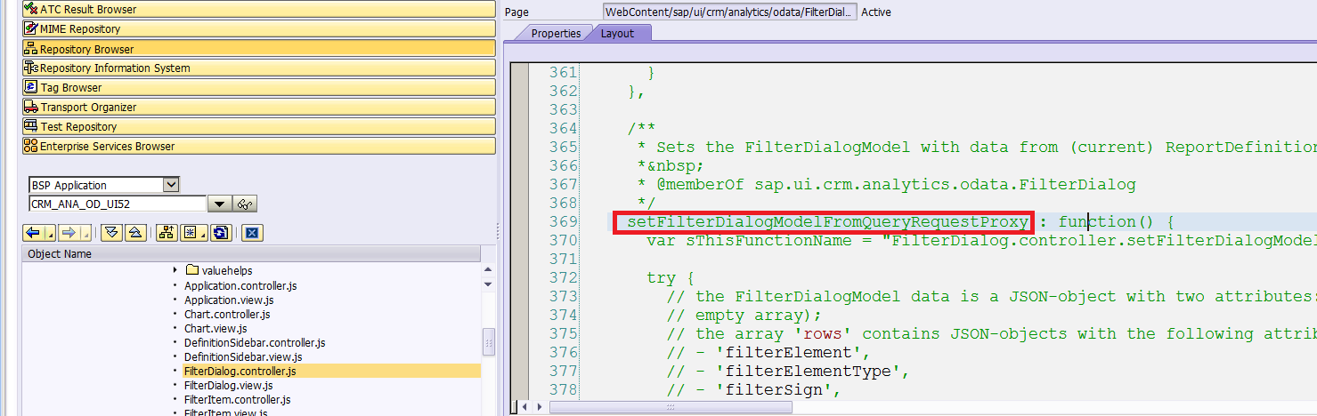 {"number":"899","type":"E","variable1":"An application error occured in BSP component CRM_ANA_OD_UI52 in JavaScript function FilterDialog.controller.setFilterDialogModelFromQueryRequestProxy TypeError: Object doesn't support property or method 'getAllReportFilters'","componentId":"C25_W62_V63"}