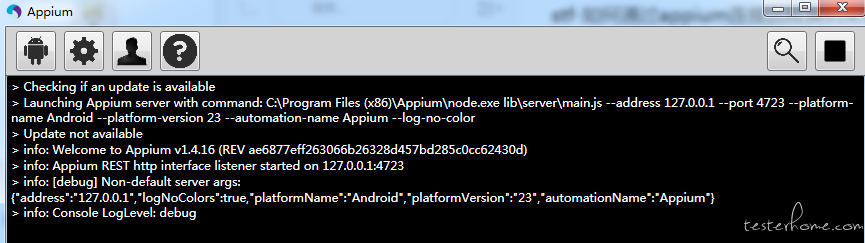 3.开启appium-server服务后,运行以下脚本(这里使用的是java编写的自动化测试脚本)