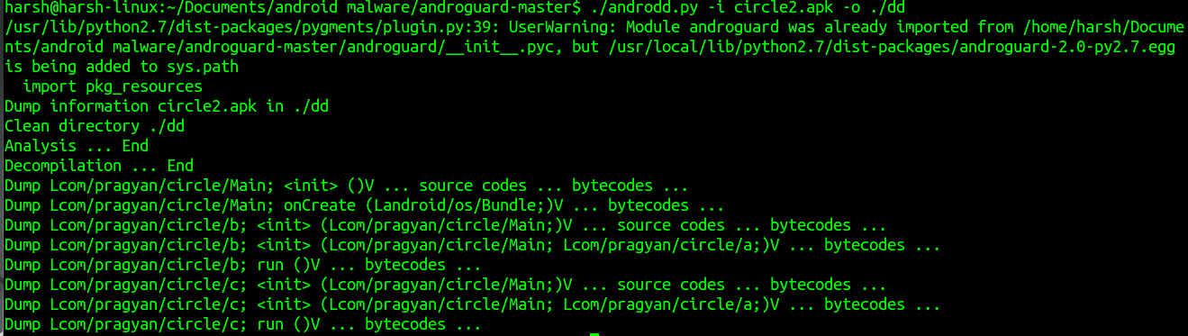 In this tutorial we have “circle.apk” a demo input app and “dd” as output directory.