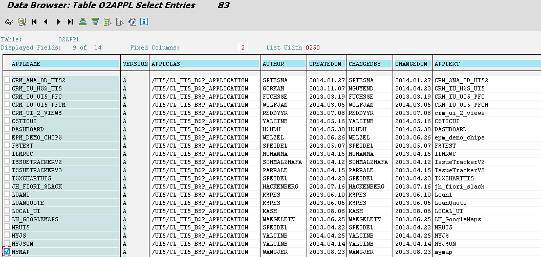 可以通过filter table O2APPL 得到所有的BSP application列表: