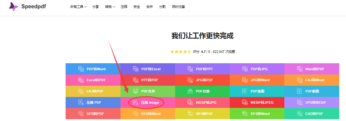 首先搜索speedpdf找到并打开这款图片压缩工具后,选择压缩image进入图片压缩页面。