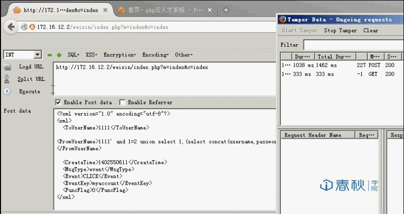 接下来还需要修改HTTP头,伪装成XML,点击浏览器上方工具栏,打开Tamper Data ,点击启动。