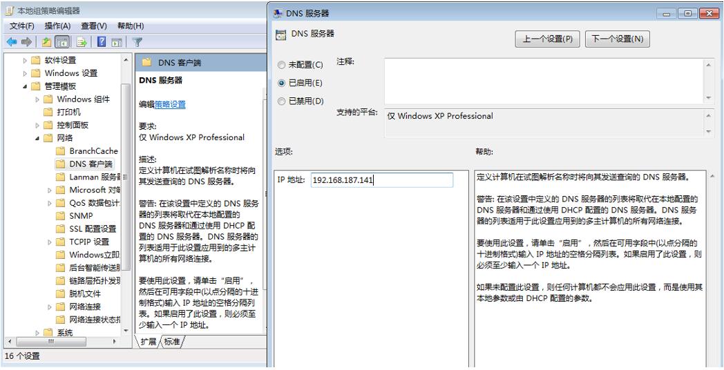 ii. 配置代理专用dns(192.168.187.2),可解析任意域名