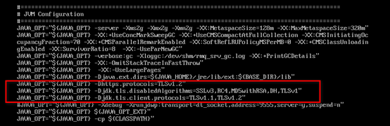 -Djdk.tls.disabledAlgorithms=SSLv3,RC4,MD5withRSA,TLSv1