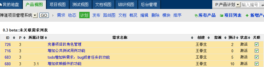 - 同时在项目关联需求的时候,计划可以帮助需求的关联。