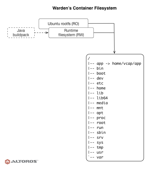 The main difference between Docker and Warden is in the way container images are organized. Warden is designed to run applications that get all their dependencies from pieces of software called buildpacks. Warden containers usually have only two layers: a read-only layer with an OS root file system (for example, Ubuntu 14.04) and a nonpersistent, read/write layer for the application itself, all its dependencies, and temporary data.
