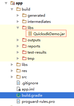 task makeJar(type: Jar, dependsOn:[\'build\']){ archiveName = \'QuicksdkDemo.jar\' //包名 from(\'build/intermediates/classes/debug/\') destinationDir = file(\'build/libs\') //导出路径 exclude(\'com/taiyouxi/a3k/BuildConfig.class\') //不打进包的文件 exclude(\'com/taiyouxi/a3k/BuildConfig\$*.class\') //不打进包的文件 exclude(\'**/R.class\') //不打进包的文件 exclude(\'**/R\$*.class\') //不打进包的文件 include(\'com/taiyouxi/a3k/*.class\') //需要打进包的文件 include(\'com/quicksdk/unity/*.class\') //需要打进包的文件 include(\'com/weibo/*.class\') //需要打进包的文件 include(\'com/wxapi/*.class\') //需要打进包的文件 } makeJar.dependsOn(build)