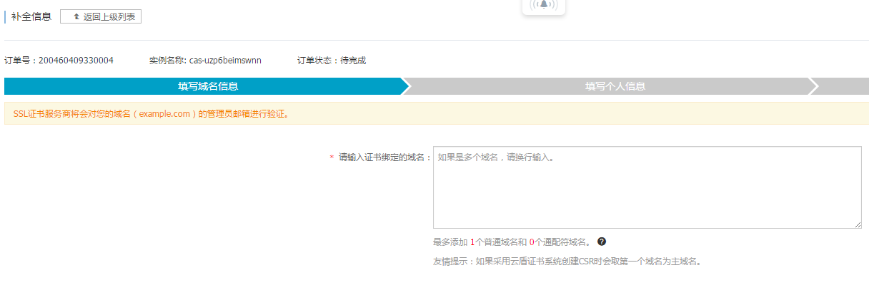 2. 补全域名和联系人信息
