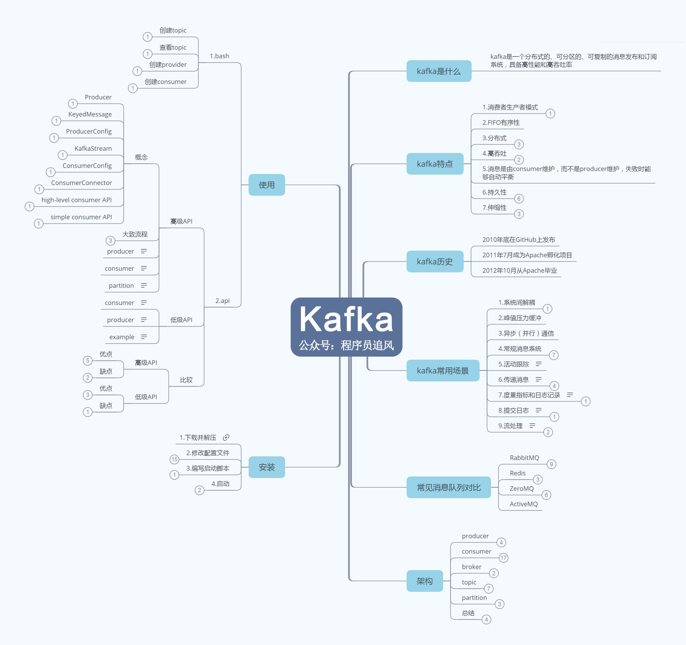 关于Kafka的知识总结了个思维导图