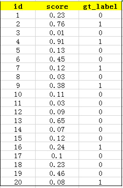 score,假设某类共有20个测试样本,每个的id,confidence score和ground truth