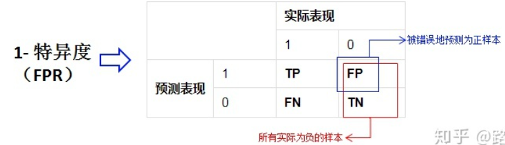 TNR=TN/(TN+FP) -> 负样本预测结果数/负样本实际数