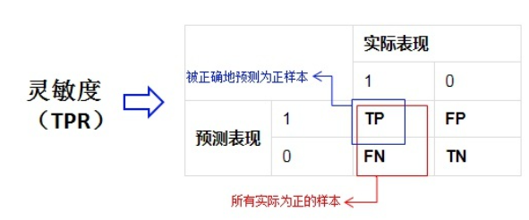 TPR= TP/(TP+FN) -> 正样本预测结果数/正样本实际数