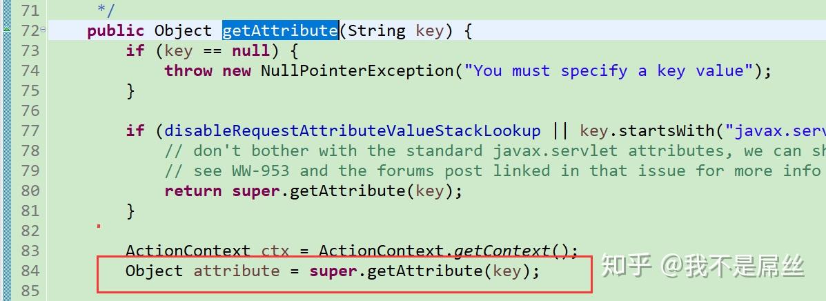 看这个request中的包装类到底对什么进行了包装呢,发现里面的getAttribute方法有点猫腻,方法中先调用了父类的getAttribute方法,那我们看它父类到底是谁呢?