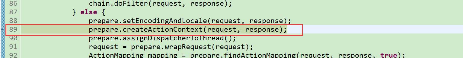 首先在StrutsPrepareAndExecuteFilter中的doFilter方法中打个断点并访问action进入doFilter方法