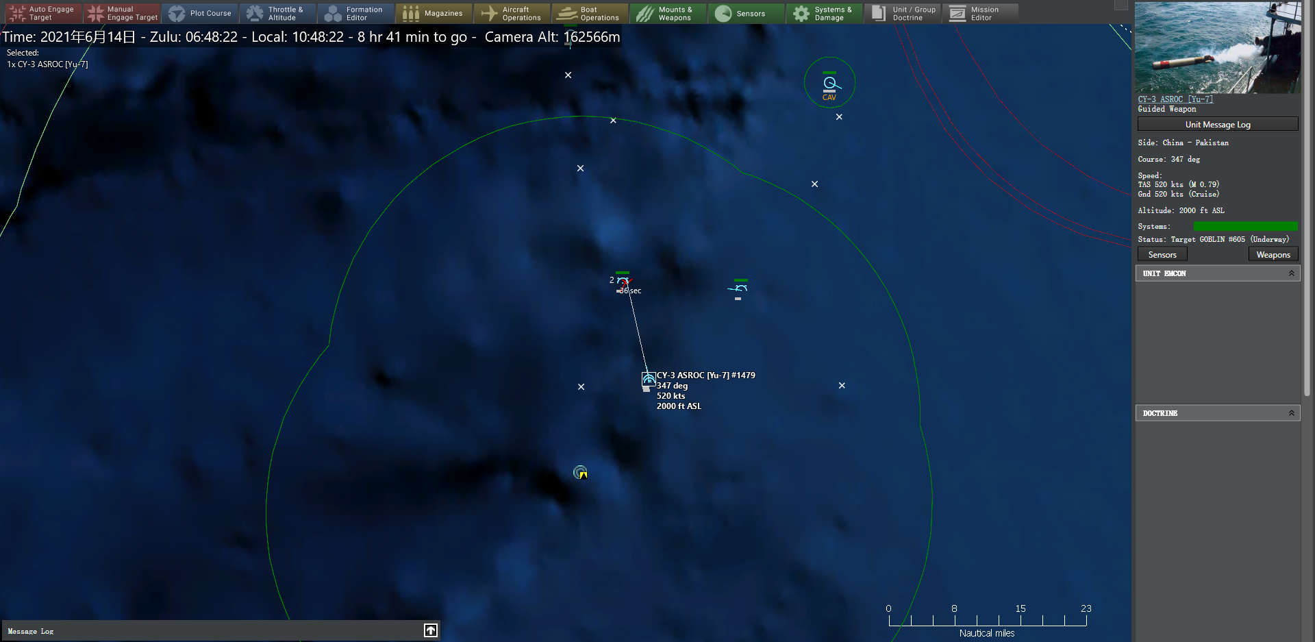 如有必要,亦可将防空导弹用于反舰模式勾选,但实际上该想定中我方反舰力量冗余,无需进行此条令设置。