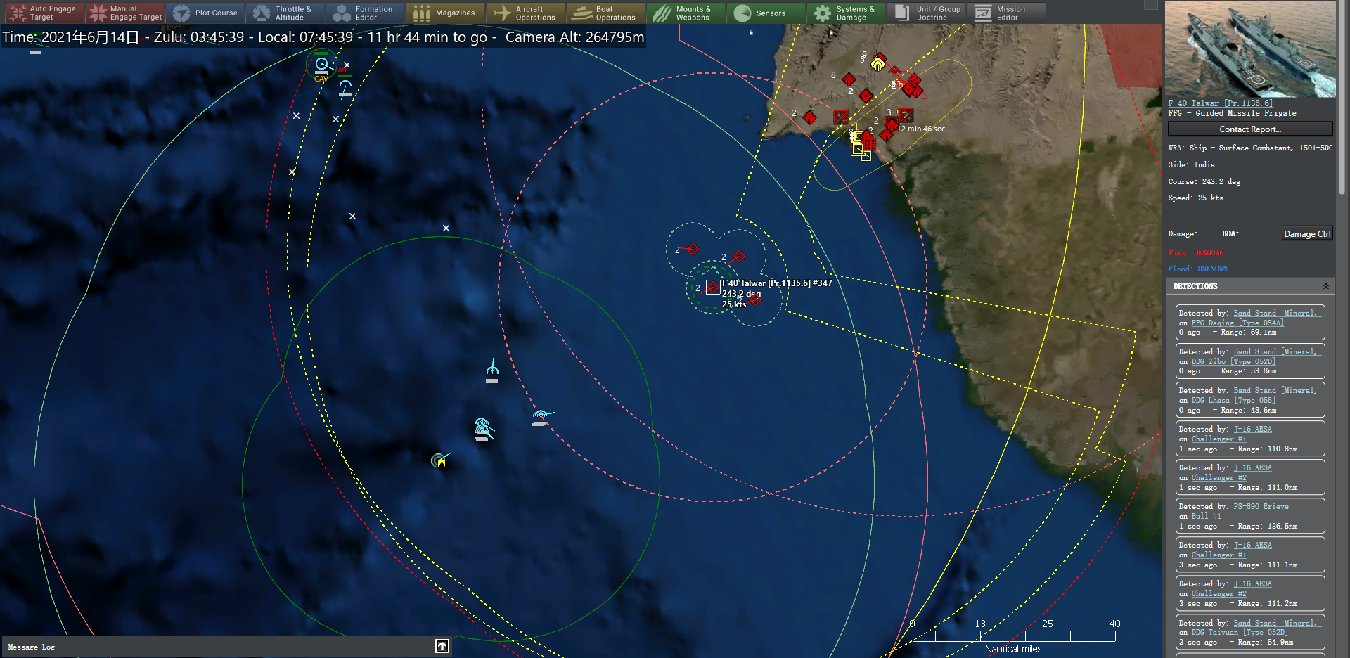 CMO制作组同样将目光聚焦在了南亚次大陆。2021年5月6日,CMO发售了最新的独立DLC《指挥:克什米尔战火》(Command: Kashmir Fire),并带来一系列的重大更新,这其中包括了改进的声呐模型、火控级的FLIR(前视红外系统)/IRST(红外搜索和跟踪系统)等,随后会为大家做详细介绍。