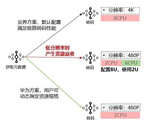 视频文件的大小从MB到GB,不同编码格式和分辨率对转码需要的计算资源要求差别很大,为保证转码函数的性能,通常配置一个很大的资源规格,但是在低分辨率的(例如短视频)场景下,会造成资源浪费。Functiongraph提供了一种方案支持函数执行时可根据业务需要动态指定资源规格,最小化资源占用,可以给用户带来更精细的资源控制,更低的成本开销。