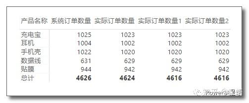 可以看到每一个产品的实际订单数量都少了两个,计算是正确的,但总计行竟然也只少了两个,明显与明细数据之和不符!