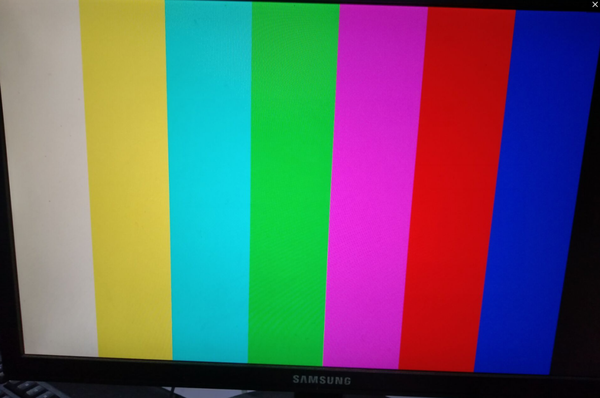 连接好开发板和显示器,需要注意,开发板的各个连接器不要带电热插拔,下载好试验程序,可以看到显示器显示8条彩条。开发板做为HDMI输出设备,只能通过HDMI显示设备来显示,不要试图通过笔记本电脑的HDMI接口来显示,因为笔记本的HDMI接口也是输出设备。