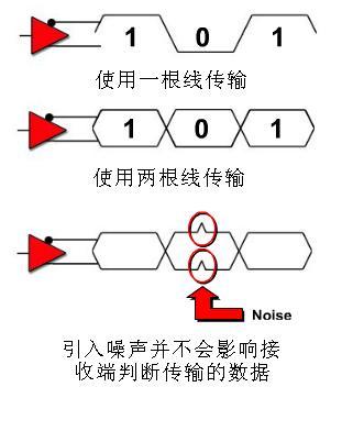 TMDS差分传动技术是一种利用2个引脚间电压差来传送信号的技术。传输数据的数值(“0”或者“1”)由两脚间电压正负极性和大小决定。即,采用2根线来传输信号,一根线上传输原来的信号,另一根线上传输与原来信号相反的信号。这样接收端就可以通过让一根线上的信号减去另一根线上的信号的方式来屏蔽电磁干扰,从而得到正确的信号。