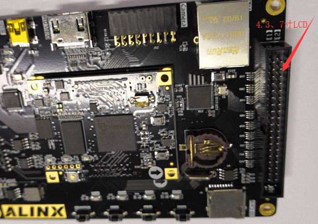 在用开发板做4.3寸LCD、7寸LCD屏显示实验时,LCD模块接开发板的J8扩展口,注意管脚不要接错。