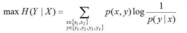 相当于已知X,计算Y的的概率,转换成公式,便是要最大化下述式子H(Y|X):
