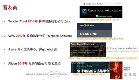各大通用类云厂商,一般都是通过直接买买买,获得了云渲染的能力。