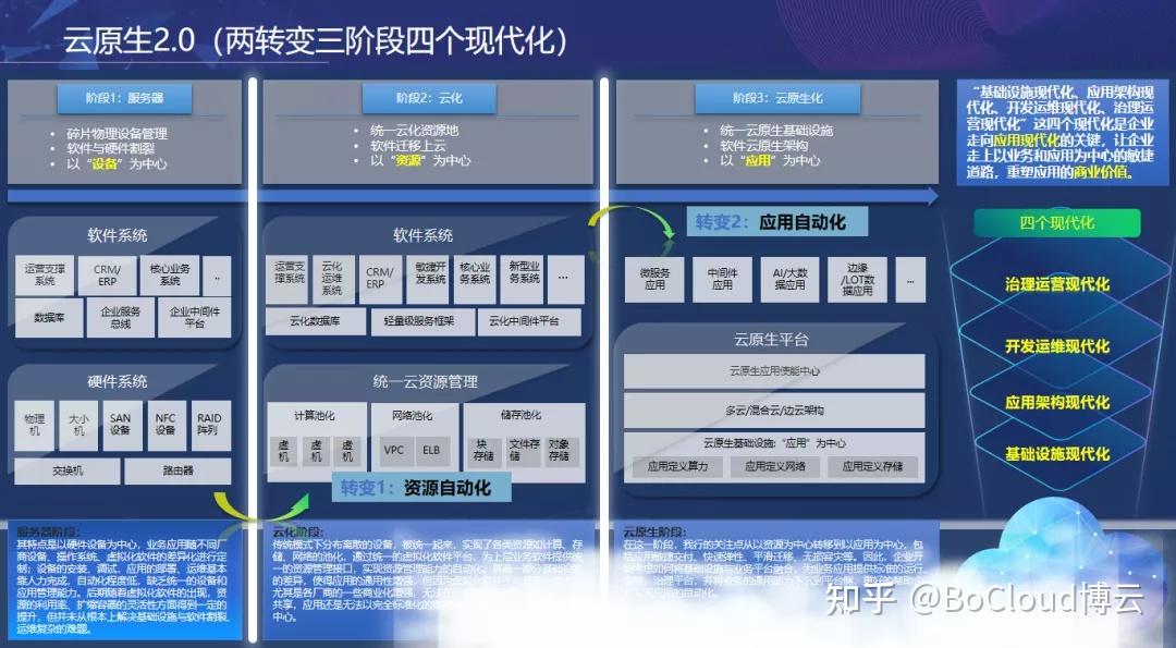 四个现代化,就是基础设施现代化、应用架构现代化、开发运维现代化、治理运营现代化,下面我详细介绍一下。