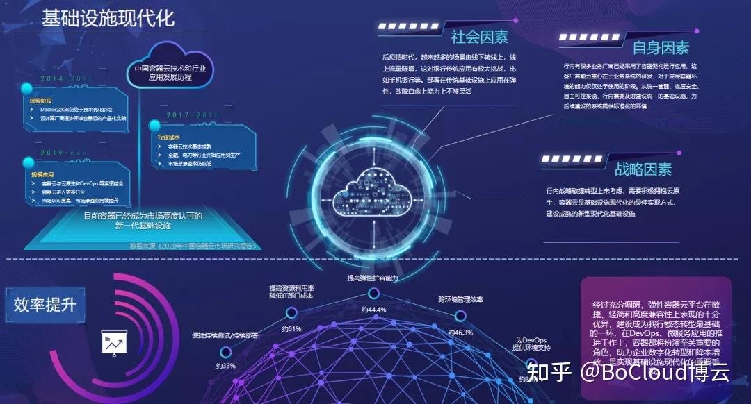 根据我们调研,目前容器已经成为市场高度认可的新一带基础设施,促使我们完成基础设施现代化有三个方面的因素。