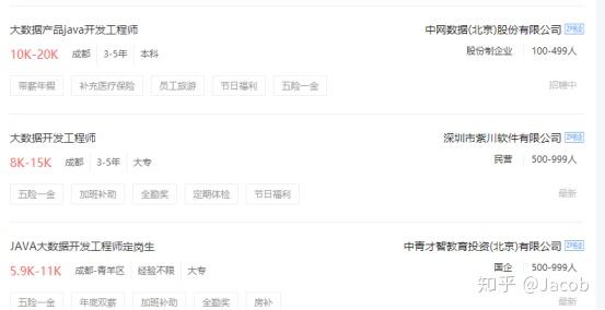 通过招聘网站数据限制,目前大数据开发工程师初级人才基本可以达到12K的薪资水平,而又2-3年工作经验的基本可以达到年薪30万左右。相比其他行业来说,薪资水平是非常高的。