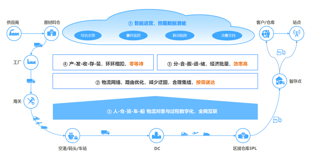 这个流程环节看起来很短,也似乎并不复杂。但其实这里面要协同的内容非常多,这其中就需要华为物流协同上千家的物料供应商,难点就在于如何协同这些供应商,集结原材料,快速通关,调度运输,将物料按时、按需、安全送达工厂。