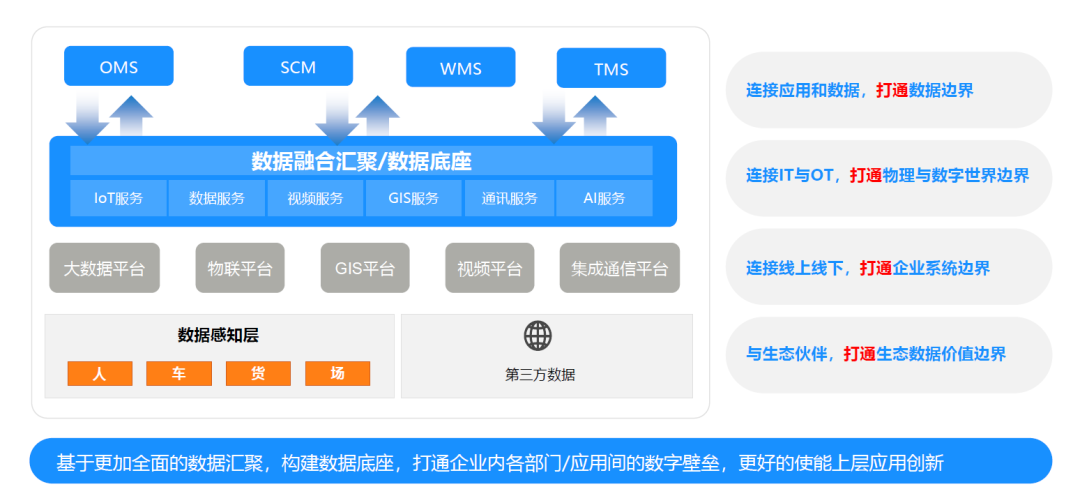 更重要的是,基于这些数据,华为物流实现了四个打通:第一,打通生态合作伙伴;第二,连接线下与线上;第三,打通IT与OT,打通物理的世界;最后,数据要能连接我们的应用,去打通数据边界,千万不要将数据放进服务器里面,变成沉睡的资产。