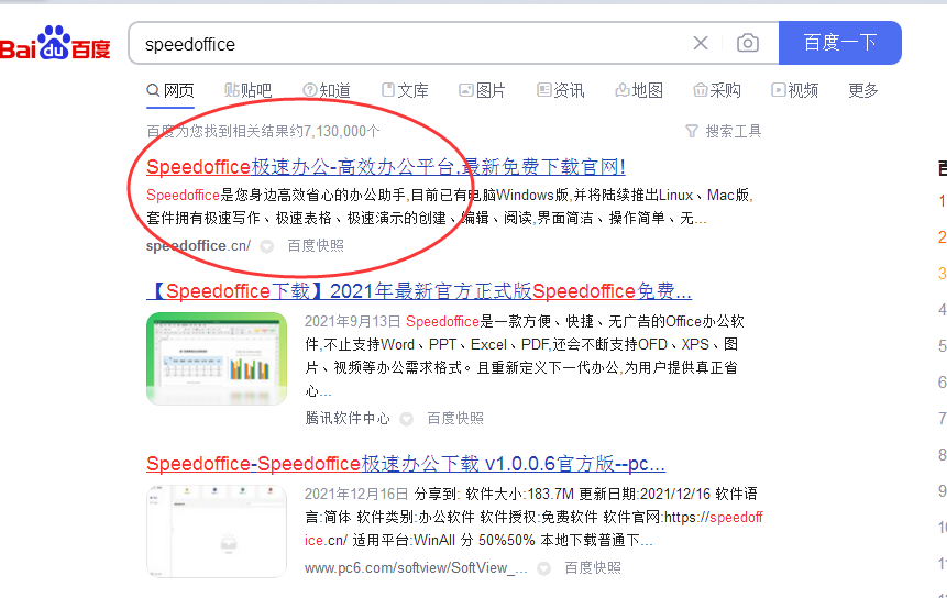 如果需要全篇caj文档转换成Word,我们需要使用相应的转换工具。在百度搜索speedoffice在线转换并点击进入。