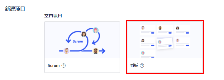 4. 进入“新建项目”页面,项目类型选中“看板”。