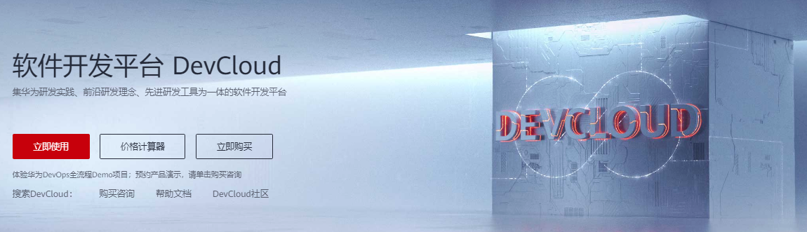 1. 点击华为云Dev Cloud进入到华为云DevCloud页面,点击下面的“立即使用”进入到控制台页面。