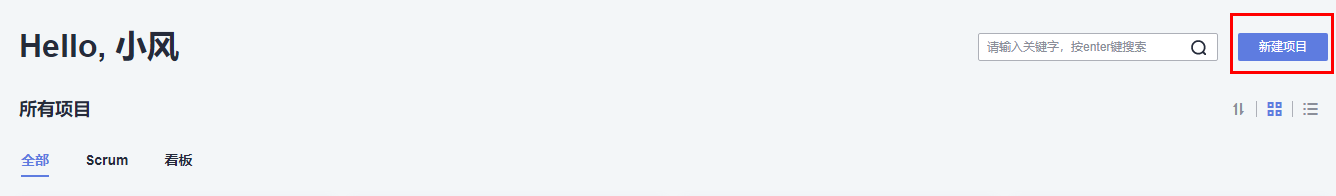 3. 在控制台页面,单击项目管理首页“新建 项目”。