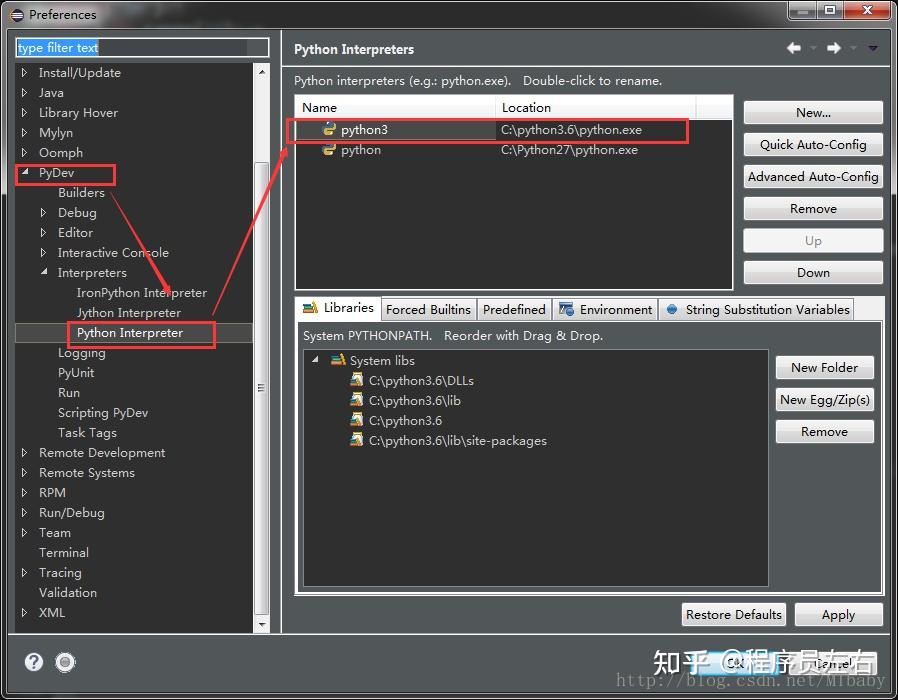 windows——>preferences——>General——>Pydev——>Pyhton Interpreter